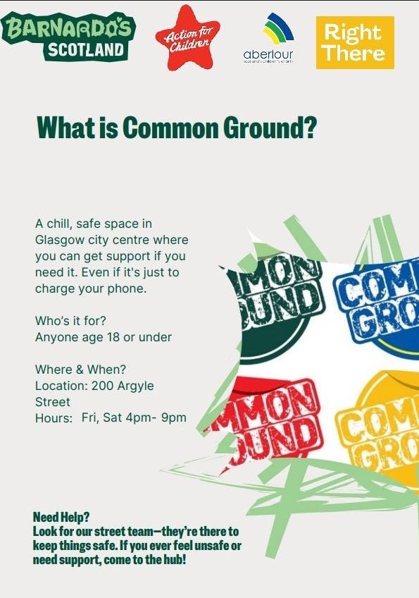 Hyndland Families - please find below some important information from Barnardos Scotland. Common ground is a safe space that is open to young people up to the age of 25 in the city centre
